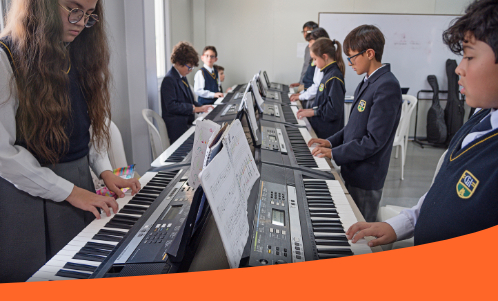 La dopamina es la hormona que genera motivación y placer, que relaja y ayuda a la concentración; por esto y por otros múltiples beneficios como los efectos positivos en el desarrollo cognitivo, creativo, intelectual, psicológico y emocional de los niños es que hace parte vital del proceso educativo de cualquier institución. En el GH lo sabemos y es por esto que, además de las clases de música, ofrecemos programas de fundamentación musical que se desarrollan a partir de grado tercero.